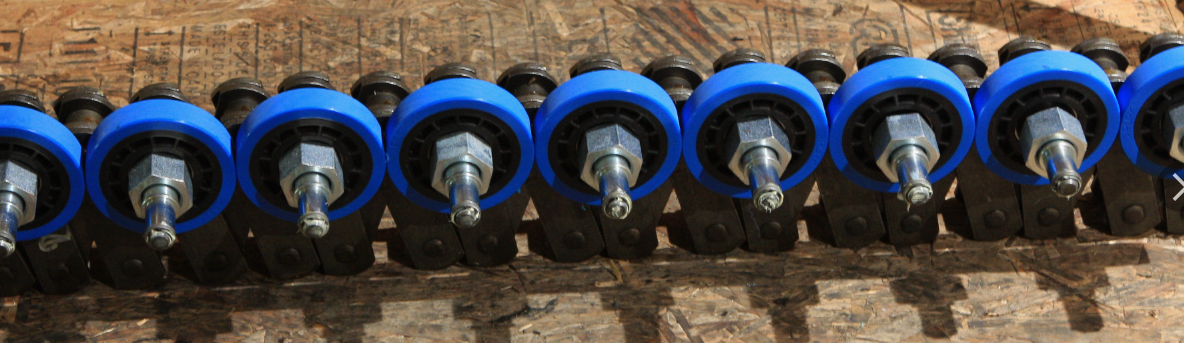 Gumi: A gumihengerek általában jó ütéscsillapítással és kopásállósággal rendelkeznek, hatékonyan csökkentik a zajt és meghosszabbítják a berendezés élettartamát. Alkalmas közepes és alacsony terhelésű alkalmazásokhoz.