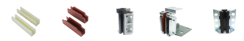 A felvonóvezető saruk a felvonófülkére és az ellensúlyra szerelt fontos alkatrészek. Fő funkciójuk, hogy a felvonófülkét a vezetősínek mentén gördülékenyen vezessék, és korlátozzák a kabin oldalirányú elmozdulását. A vezetőpapucsok gyakori típusai közé tartoznak a csúszó vezetőpapucsok és a görgős vezetőpapucsok, amelyek kulcsszerepet játszanak az ütéselnyelésben, a zajcsökkentésben és a stabil működésben.