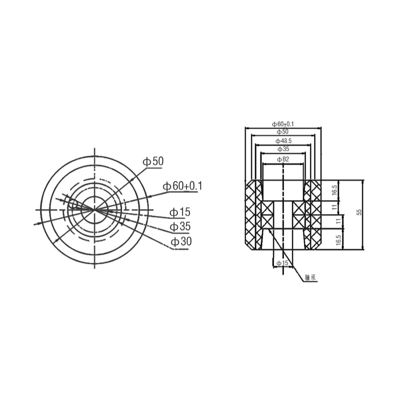 A nyomógörgős termék átmérője 60 mm, magassága 55 mm. 6202-es csapággyal van felszerelve. Ez a csapágyas modell nagy teherbíró képességgel és forgási sebességgel rendelkezik, és alkalmas mozgólépcsőgörgő alkalmazási forgatókönyvekhez. A CPU (nagy teljesítményű műanyag) használata hosszú ideig stabil fizikai és kémiai tulajdonságokat tarthat fenn, és meghosszabbítja a görgők élettartamát; a görgők kiváló minőségű csapágyakat és anyagokat használnak, amelyek erős teherbíró képességgel rendelkeznek, és képesek kielégíteni a mozgólépcső különböző terhelési igényeit. működési követelmények a feltételek mellett.